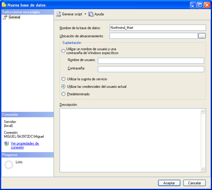 Use the option to create a new database. In "Name the database" Type Northwind_Mart and set the impersonation mode. For example use "Use the credentials of current user"